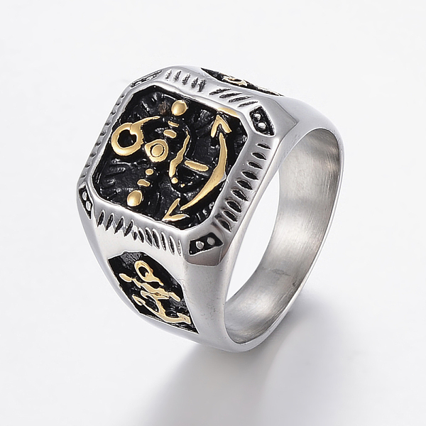 PandaHall 304 Stainless Steel Signet Rings for Men, Wide Band Finger Rings, Square with Anchor, Antique Silver & Antique Golden, Size 13... Price: $18.77 | PandaHall