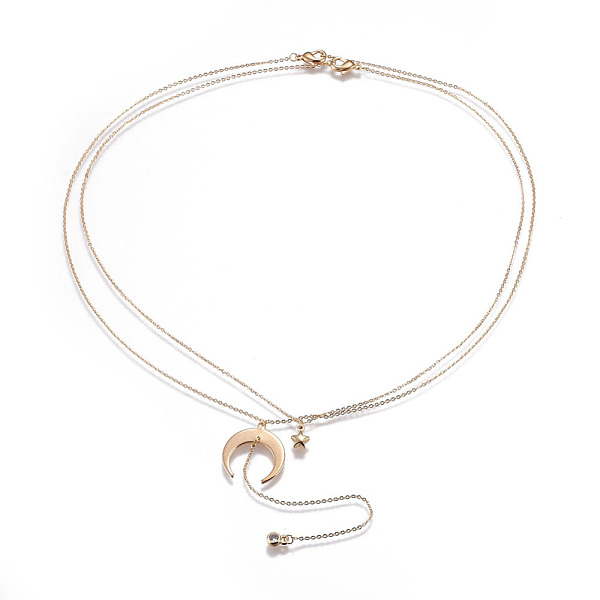 PandaHall Golden Brass Crescent Moon Pendant Necklace with Rhinestone, Star, 17.60 inch(44.7cm) Rhinestone Star Price: $7.34 | PandaHall