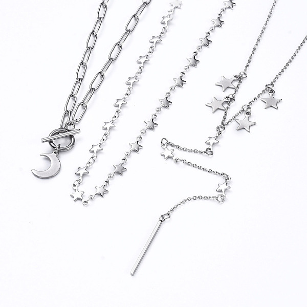 PandaHall 304 Stainless Steel Pendant Necklaces Sets, with Paperclip Chains & Star Link Chains, Toggle Clasps & Lobster Claw Clasps, Moon... Price: $10.42 | PandaHall