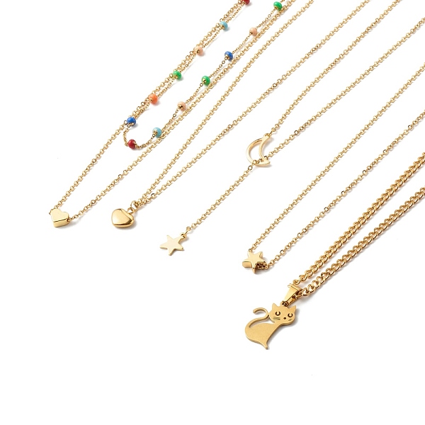 PandaHall Heart & Star & Moon & Cat Pendant Necklace Sets for Women Girl, with 304 Stainless Steel Chains, Golden, 13.78~19.29 inch(35~49cm)... Price: $34.98 | PandaHall