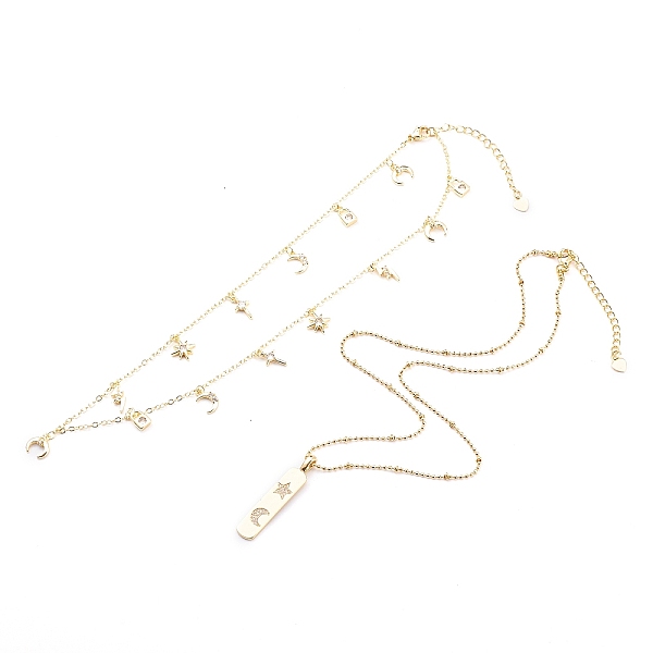 PandaHall Brass Micro Pave Clear Cubic Zirconia Pendant Necklaces Sets, Rectangle with Moon & Star, Golden, 15.74 inch(40cm) and 17.32 inch... Price: $25.68 | PandaHall