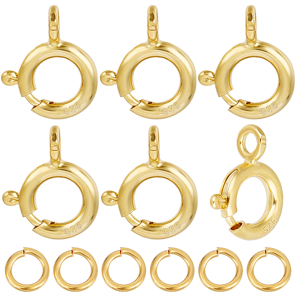 PandaHall CREATCABIN 6Pcs 925 Sterling Silver Spring Ring Clasps, Ring, with 925 Stamp, 6Pcs Brass Open Jump Rings, Real 18K Gold Plated... Price: $6.97 | PandaHall