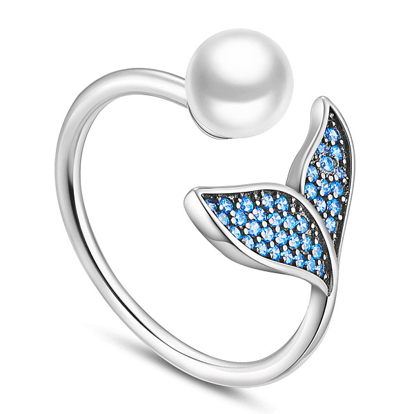 PandaHall SHEGRACE Rhodium Plated 925 Sterling Silver Cuff Rings, Open Rings, with Grade AAA Cubic Zirconia and Pearl, Whale Tail Shape... Price: $15.53 | PandaHall