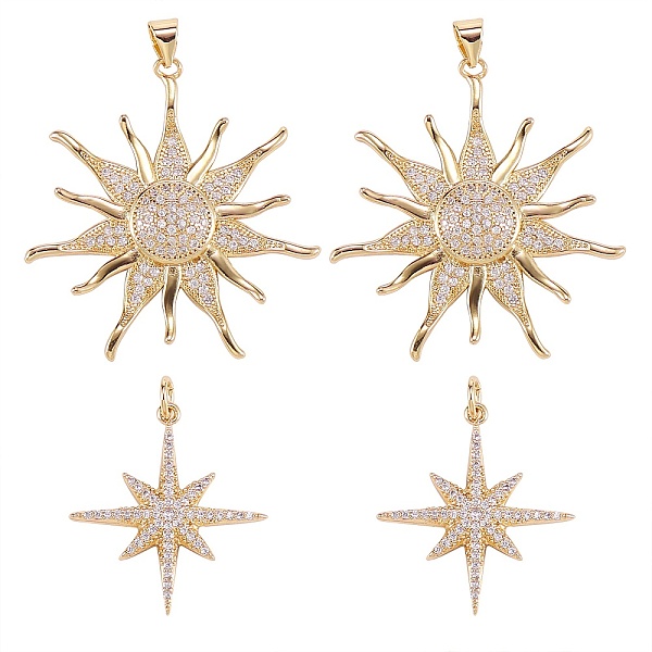 PandaHall Beebeecraft 8Pcs 4 Style 18K Gold Plated Moon Charms with Cubic Zirconia Sun and Star Dangle Pendants with Jump Ring for DIY... Price: $7.94 | PandaHall
