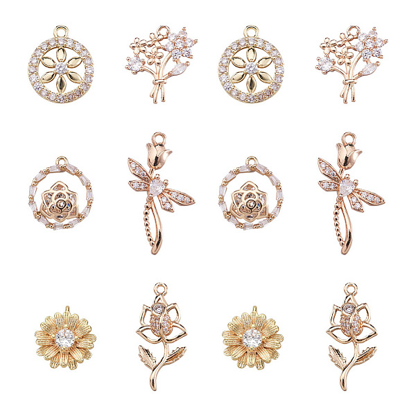 PandaHall Beebeecraft 12Pcs 2 Styles Flower Charms Micro Pave Cubic Zirconia Pendants Golden Charms for Jewelry Earring Bracelet Necklace... Price: $9.89 | PandaHall