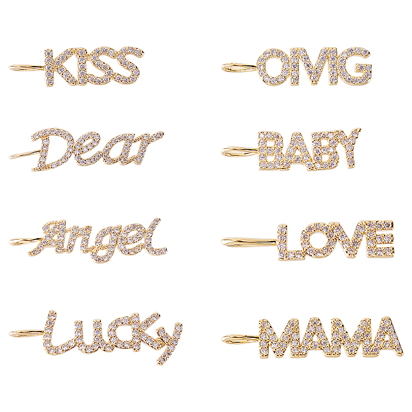 PandaHall 8Pcs 8 Styles Brass Micro Pave Clear Cubic Zirconia Pendants, Long-Lasting Plated, Word, Real 18K Gold Plated, Clear, 1pc/style... Price: $9.06 | PandaHall