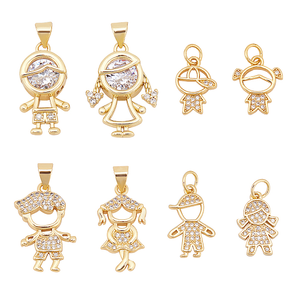 PandaHall Fashewelry 16Pcs 8 Style Brass Micro Pave Mixed Color Cubic Zirconia Pendants, Boy & Girl, Golden, 14~17.5x6.5~11.5x1.5~2.5mm... Price: $17.06 | PandaHall