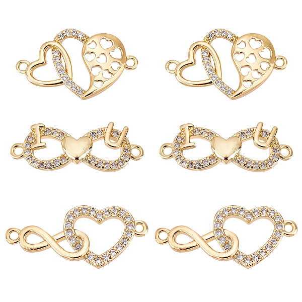 PandaHall FINGERINSPIRE 6 Pcs 3 Styles Zirconia Heart Pendant Charms Infinity Cubic Zirconia Charms with Clear Crystal Stone Gold Plated... Price: $8.62 | PandaHall
