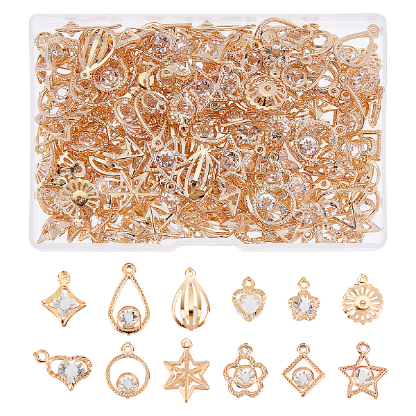 PandaHall SUPERFINDINGS 168Pcs 12 Style Iron Rhinestone Charms Pendant Cubic Zirconia Charms Light Gold Plated Dangle Pendants Rhinestone... Price: $9.89 | PandaHall
