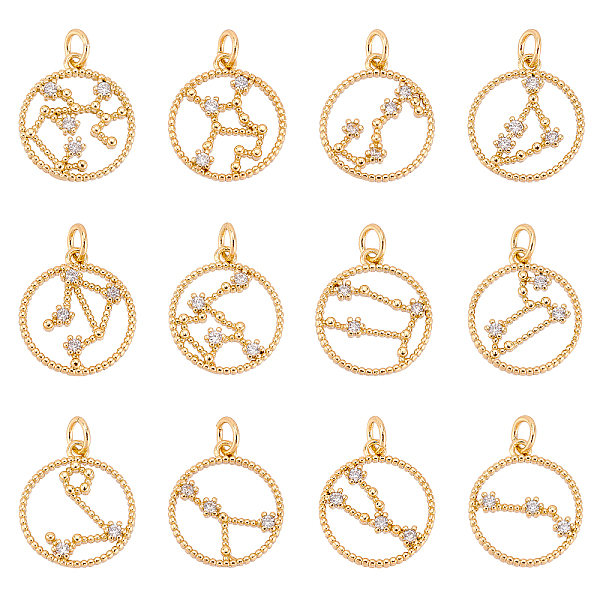 PandaHall SUPERFINDINGS 12 Style Brass Cubic Zirconia Twelve Constellation Pendant Flat Round with Zodiac Sign Jewelry Charms 17.5x15mm Real... Price: $11.32 | PandaHall