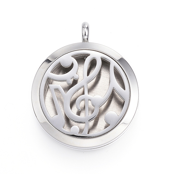 PandaHall 316 Surgical Stainless Steel Diffuser Locket Pendants, with Perfume Pad and Magnetic Clasps, Flat Round with Musical Note... Price: $0 | PandaHall