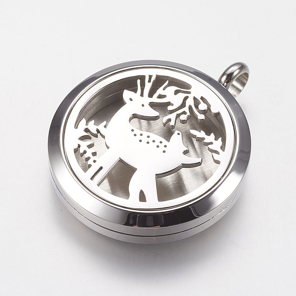 PandaHall 316 Surgical Stainless Steel Diffuser Locket Pendants, with Perfume Pad and Magnetic Clasp, Flat Round with Christmas... Price: $0 | PandaHall