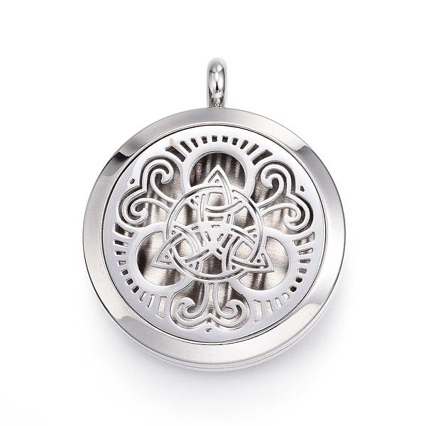 PandaHall 316 Surgical Stainless Steel Diffuser Locket Pendants, with Perfume Pad and Magnetic Clasps, Flat Round with Trinity... Price: $0 | PandaHall