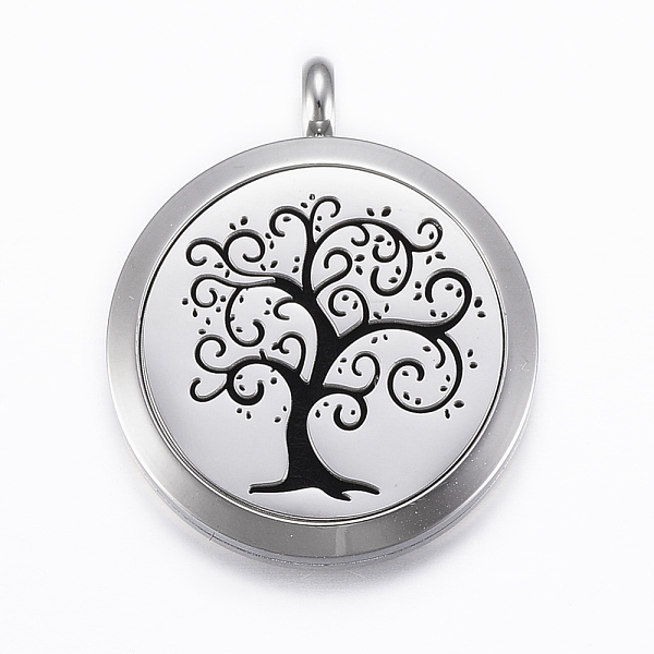 PandaHall 316 Surgical Stainless Steel Diffuser Locket Pendants, with Perfume Pad and Magnetic Clasps, Tree of Life, Stainless Steel Color... Price: $0 | PandaHall