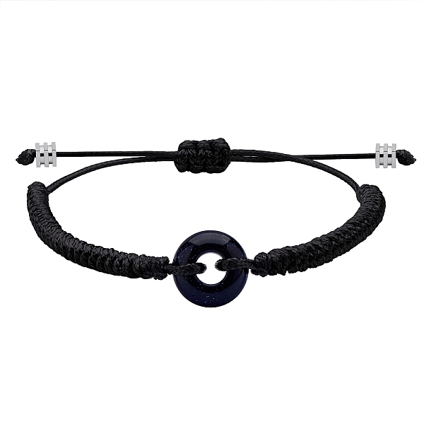 PandaHall Synthetic Blue Goldstone Donut Braided Bead Bracelet, Adjustable Gemstone Bracelet for Women, Black, Inner Diameter: 2~3-3/8 inch... Price: $1.46 | PandaHall