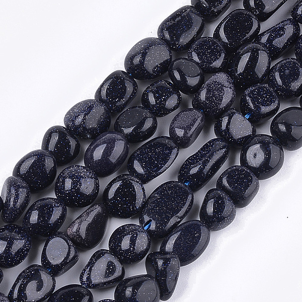 PandaHall Synthetic Blue Goldstone Beads Strands, Nuggets, Tumbled Stone, 5~8.5x5.5~7x3.5~4mm, Hole: 0.7mm, about 64pcs/strand, 16.34''... Price: $3.66 | PandaHall