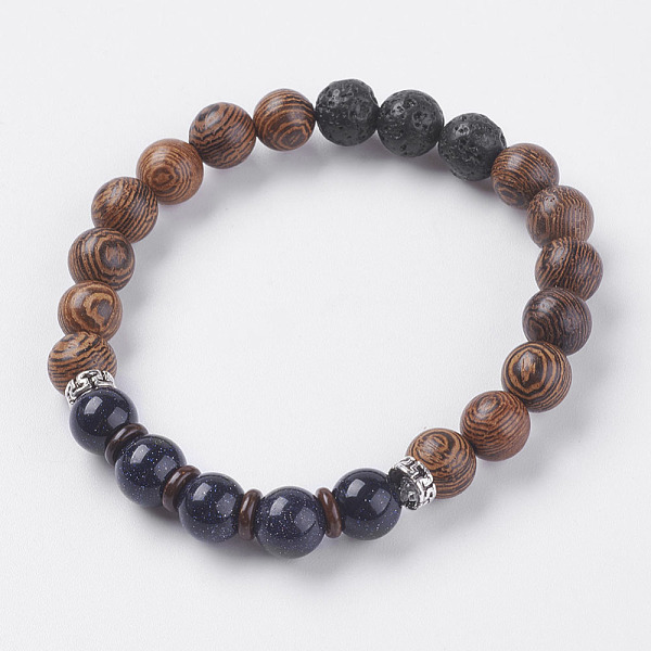 PandaHall Natural Lava Rock & Wenge Wood Beads & Coconut Stretch Bracelets, with Synthetic Blue Goldstone and Alloy Findings, 2 inch... Price: $3.04 | PandaHall