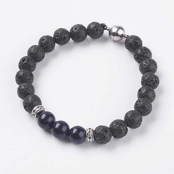 PandaHall Natural Lava Rock Beads Stretch Bracelets, with Synthetic Blue Goldstone and Magnetic Clasp, 7-1/2 inch(190mm) Goldstone Price: $1.95 | PandaHall