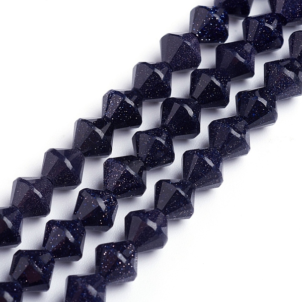 PandaHall Synthetic Blue Goldstone Beads Strands, Bicone, 5.7~6x6mm, Hole: 1mm,14.37 inch(36.5 cm),about 63 pcs/Strand Blue Goldstone... Price: $11.75 | PandaHall