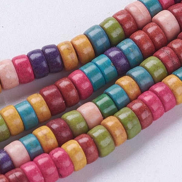 PandaHall Synthetic Turquoise Beads Strands, Dyed, Rondelle, Red, 6x2.5~3mm, Hole: 1mm, about 115~165pcs/strand, 15~15.5 inch Synthetic... Price: $16.32 | PandaHall