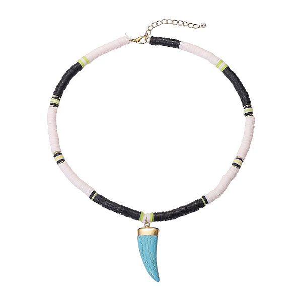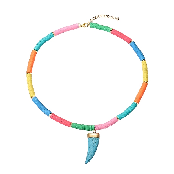PandaHall Handmade Polymer Clay Heishi Beads Pendant Necklaces, with Brass Beads, Synthetic Turquoise Pendants and Alloy Lobster Claw Clasps... Price: $11.53 | PandaHall