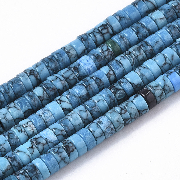 PandaHall Frosted Synthetic Turquoise Heishi Bead Strands, Dyed, Column, Turquoise, 1.5~2.5x1.5~2.8mm, Hole: 0.5mm, about 160pcs/strand, 12... Price: $4.47 | PandaHall