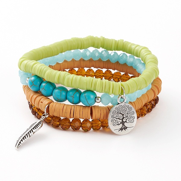 PandaHall 4Pcs Stretch Bracelets, with Polymer Clay Heishi Beads, Glass Beads, Synthetic Turquoise Beads and Alloy Pendants, Feather & Flat... Price: $6.76 | PandaHall