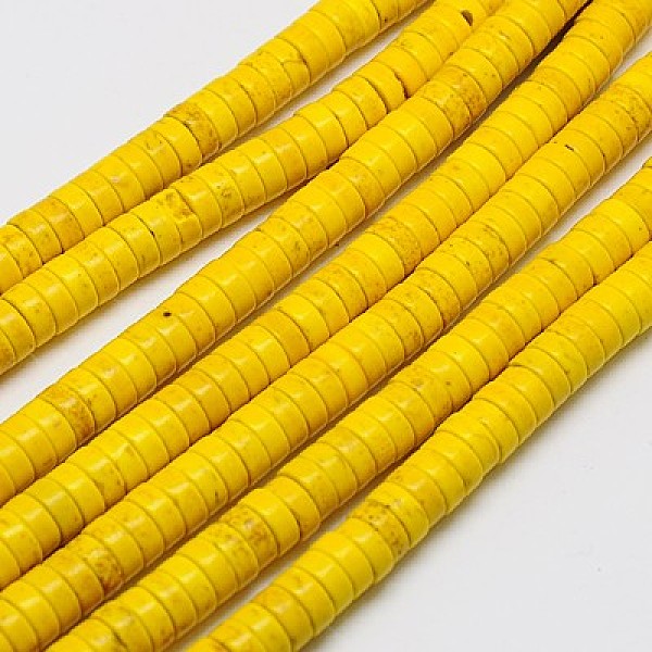 PandaHall Synthetic Turquoise Beads Strands, Heishi Beads, Dyed, Flat Round/Disc, Gold, 4x2mm, Hole: 1mm, about 170pcs/strand, 16 inch... Price: $16.32 | PandaHall