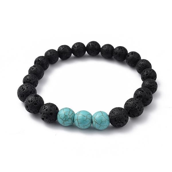 PandaHall Synthetic Turquoise(Dyed)(Dyed) & Natural Lava Rock Beaded Stretch Bracelets, Round, Inner Diameter: 2 inch(5.2cm), Beads: 8.5mm... Price: $11.91 | PandaHall