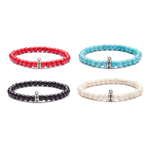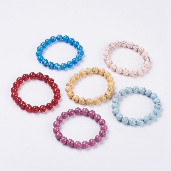 PandaHall Dyed Synthetic Turquoise(Dyed) Round Beaded Stretch Bracelet, Stone Jewelry for Women, Mixed Color, Inner Diameter: 2-1/8 inch... Price: $12.6 | PandaHall