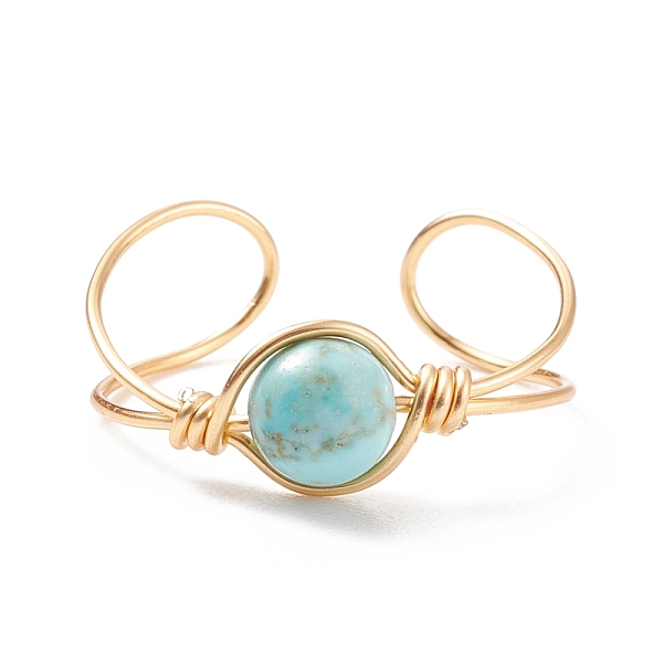 PandaHall Synthetic Turquoise Round Beaded Open Cuff Ring, Copper Wire Wrap Gemstone Jewelry for Women, Golden, US Size 9(18.9mm) Synthetic... Price: $15.56 | PandaHall