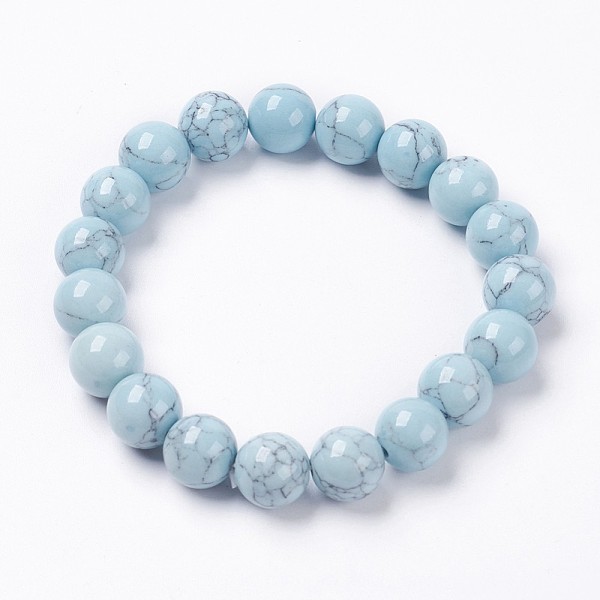 PandaHall Synthetic Turquoise Beaded Stretch Bracelet, Round, Pale Turquoise, 2 inch(5cm), Beads: 12mm Synthetic Turquoise Cyan Price: $16.32 | PandaHall