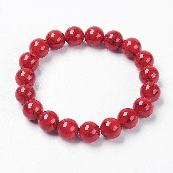 PandaHall Round Synthetic Turquoise(Dyed) Beaded Stretch Bracelet for Women, FireBrick, Inner Diameter: 2-1/4 inch(5.8cm) Synthetic... Price: $13.39 | PandaHall
