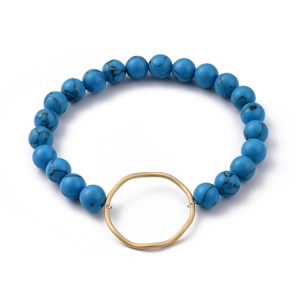 PandaHall Round Synthetic Turquoise(Dyed) Stretch Beaded Bracelets, Link Bracelets, with Matte Gold Color Plated Alloy Linking Ring, Inner... Price: $15.22 | PandaHall