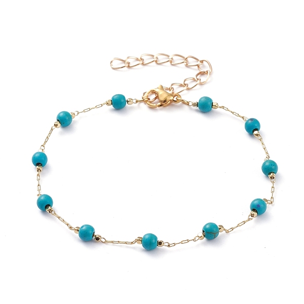 PandaHall Round Synthetic Turquoise(Dyed) Beaded Bracelets, with Brass Cable Chains and 304 Stainless Steel Lobster Claw Clasps, Golden... Price: $24.59 | PandaHall