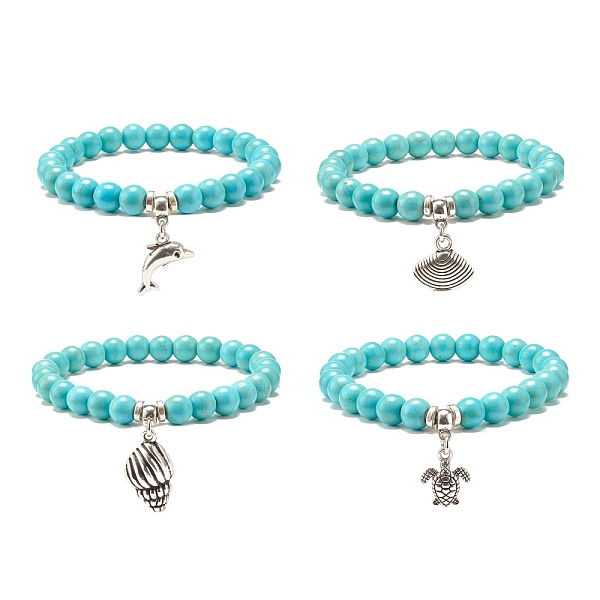 PandaHall 2Pcs 2 Color Tibetan Style Alloy Dolphin & Synthetic Turquoise Round Beaded Stretch Bracelets Set, Stackable Bracelets, Mixed... Price: $10.74 | PandaHall