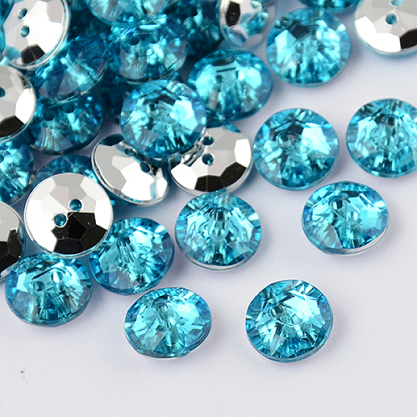 PandaHall 2-Hole Taiwan Acrylic Rhinestone Flat Round Buttons, Faceted & Silver Plated Pointed Back, Deep Sky Blue, 10x4mm, Hole: 1mm... Price: $11.93 | PandaHall