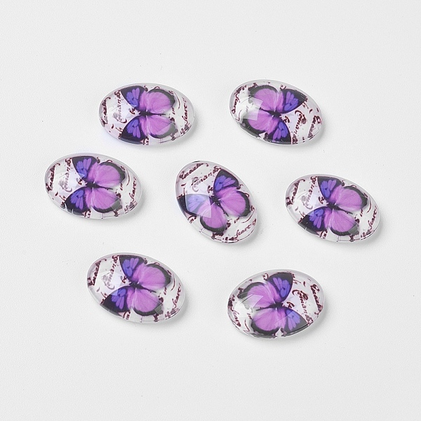 PandaHall Tempered Glass Cabochons, Oval, Purple Butterfly Pattern Printed, Good for Antique Ring Jewel Making, Purple, 18x13x6mm Glass Oval... Price: $5.22 |