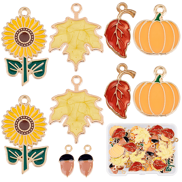 PandaHall SUNNYCLUE 40Pcs 5 Style Alloy Enamel Pendants, Acorns & Leaf & Sunflower, Thanksgiving Theme, Light Gold, Mixed Color... Price: $9.63 | PandaHall