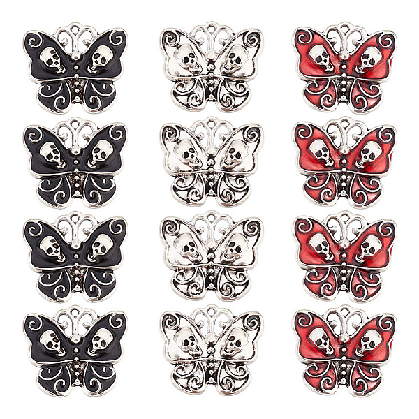 PandaHall Unicraftale 30Pcs 3 Colors Tibetan Style Alloy Pendants, with Enamel, Butterfly with Skull Charm, Mixed Color, 20.5x23x4mm, Hole... Price: $8.88 | PandaHall