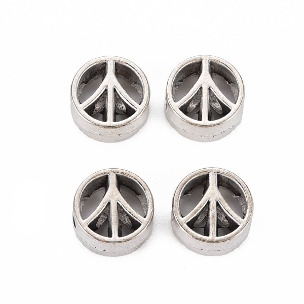 PandaHall Tibetan Style Alloy European Beads, Large Hole Beads, Cadmium Free & Lead Free, Flat Round with Peace Sign, Antique Silver... Price: $18.93 | PandaHall