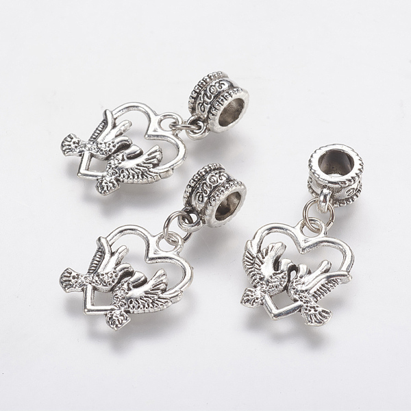 PandaHall Tibetan Style Alloy European Dangle Charms, Large Hole Pendants, Hollow Heart with Bird, Antique Silver, 29.5mm, Hole: 5mm... Price: $9.79 | PandaHall