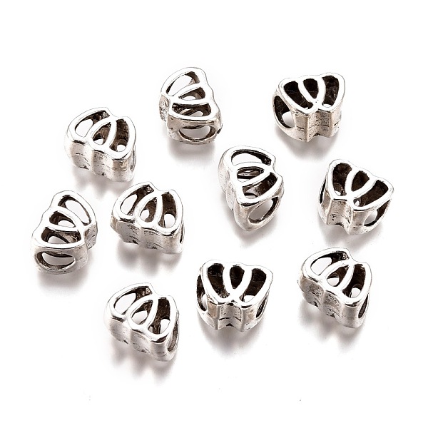 PandaHall Tibetan Style Alloy European Beads, Lead Free & Cadmium Free, Double Heart, Hollow, Antique Silver, 8x10.5x8mm, Hole: 5mm Alloy... Price: $1.28 | PandaHall