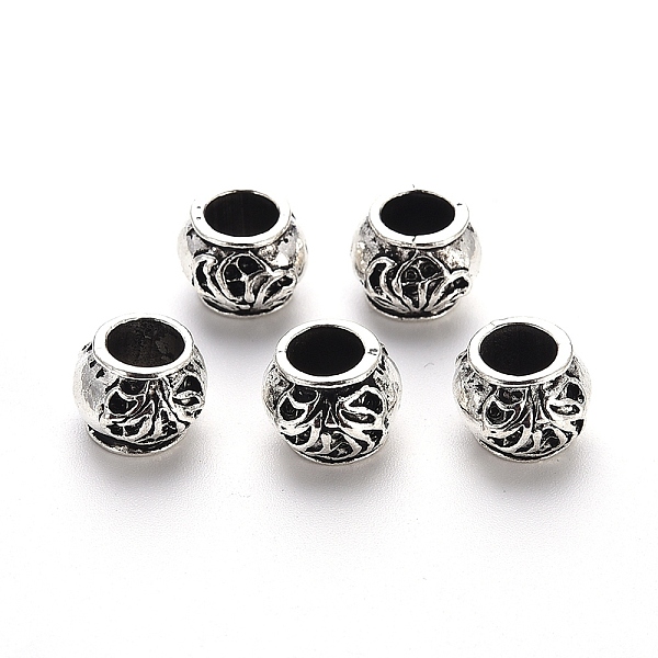 PandaHall Tibetan Style Alloy European Beads, Large Hole Beads, Rondelle with Flower, Antique Silver, 10x8.5mm, Hole: 6mm, about 342pcs/500g... Price: $9.14 | PandaHall