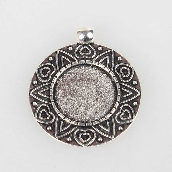 PandaHall Tibetan Style Alloy Flat Round Pendant Cabochon Settings, Cadmium Free & Lead Free, Antique Silver, Tray: 25mm, 37x32x3mm, Hole... Price: $18.6 | PandaHall