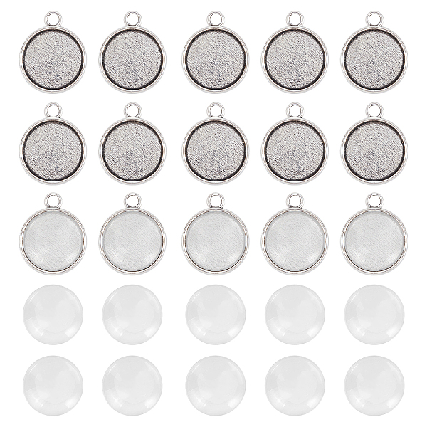 PandaHall ARRICRAFT 200pcs Flat Round Pendant Making Kits, Including Tibetan Style Alloy Pendant Cabochon Settings, Transparent Glass... Price: $6.37 | PandaHall
