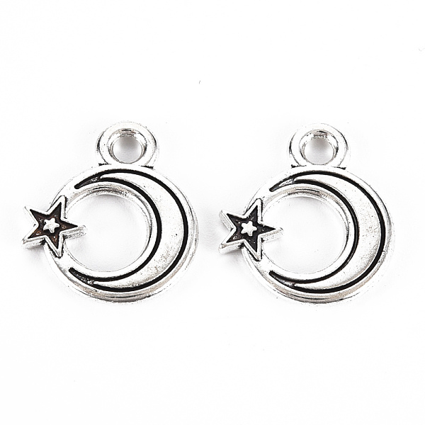 PandaHall Tibetan Style Alloy Pendants, Lead Free & Cadmium Free, Flat Round with Moon and Star, Antique Silver, 16.5x13.5x1mm, Hole: 1.5mm... Price: $9.3 | PandaHall