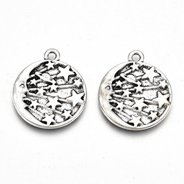 PandaHall Tibetan Style Alloy Pendants, Lead Free & Cadmium Free, Flat Round with Moon & Star, Antique Silver, 22.5x19x2mm, Hole: 1.8mm... Price: $9.3 | PandaHall