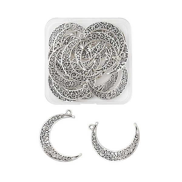 PandaHall Tibetan Style Alloy Pendants, Crescent Moon, Cadmium Free & Nickel Free & Lead Free, Antique Silver, 40x29x1mm, Hole: 2.5mm, about... Price: $22.19 | PandaHall