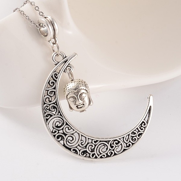 PandaHall Moon with Buddha Head Tibetan Style Alloy Pendants, Antique Silver, 41x30x1.5mm, Hole: 5mm Alloy Moon Price: $8.14 | PandaHall